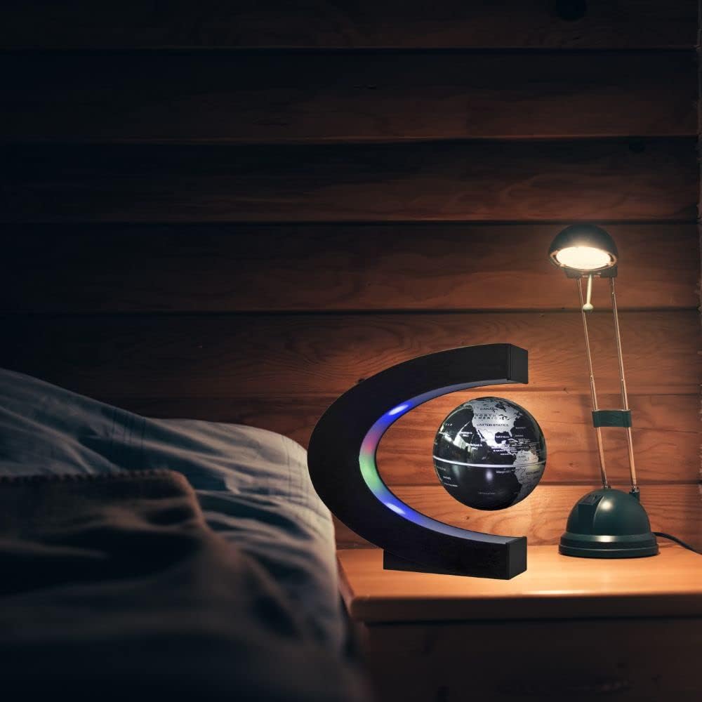 Levitation Black Globe with LED Lights C Shape Magnetic Floating World Map
