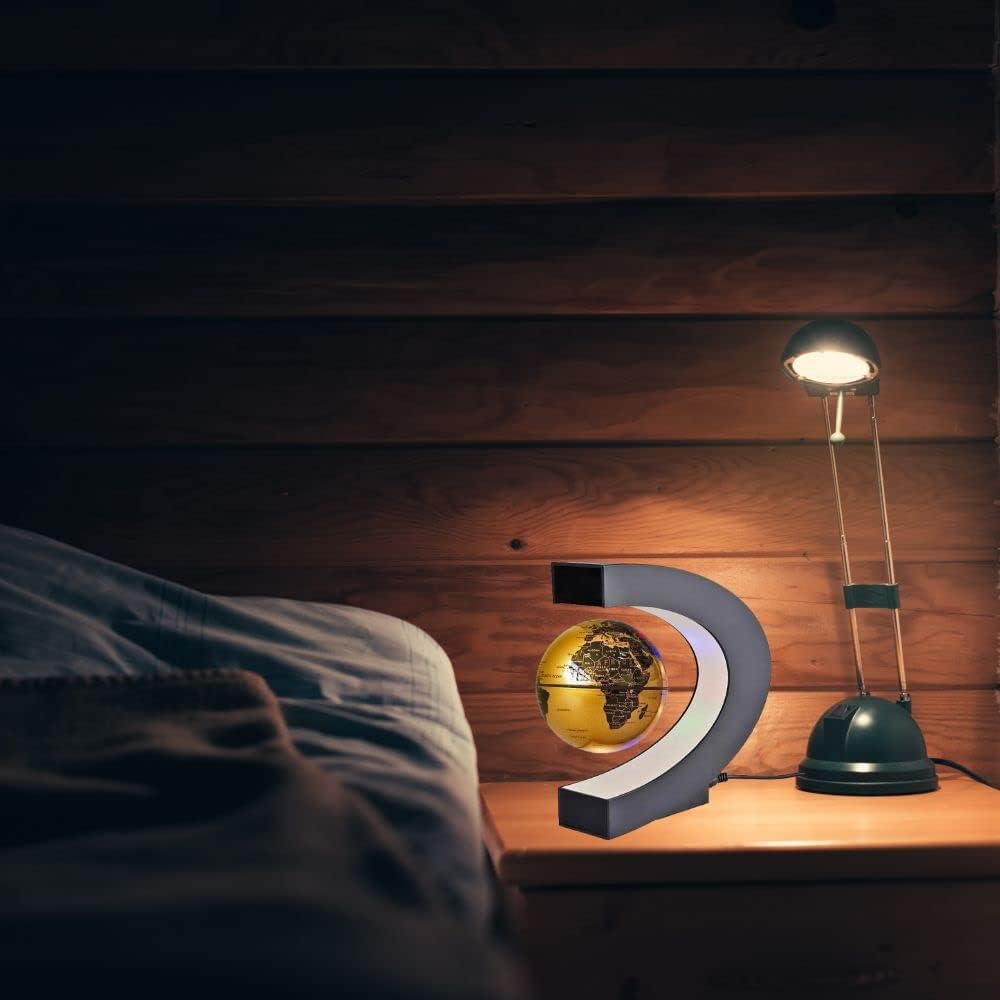 Levitation Gold Globe with LED Lights C Shape Magnetic Floating World Map