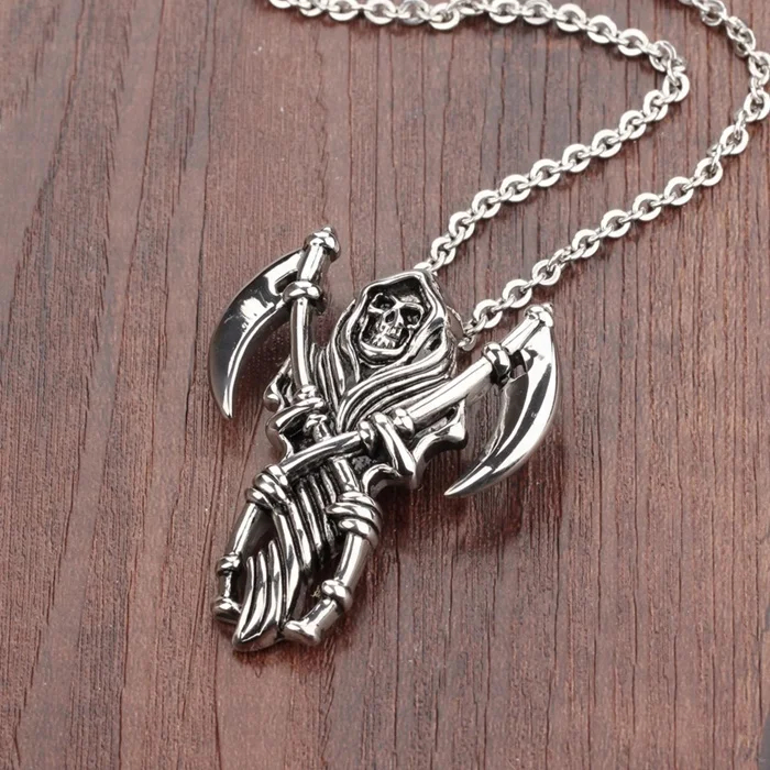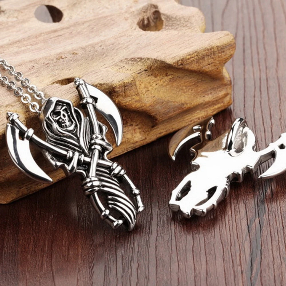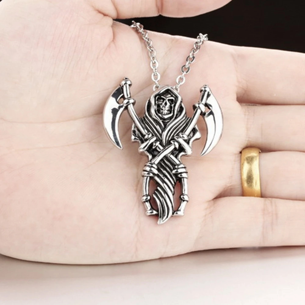 Home » Jewelry » Death Grim Reaper Pendant with Chain Stainless Steel Scythe Sickle Skull