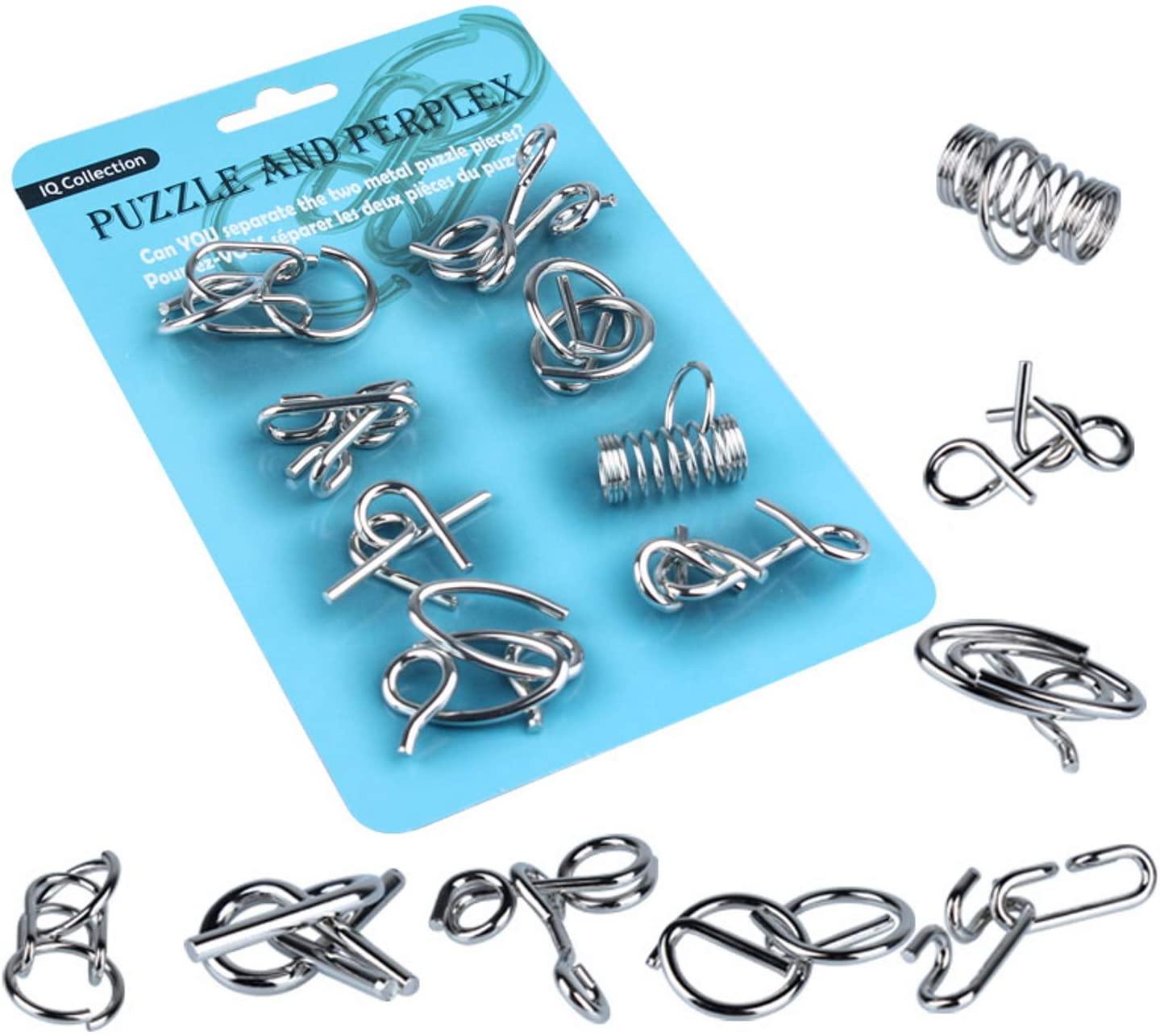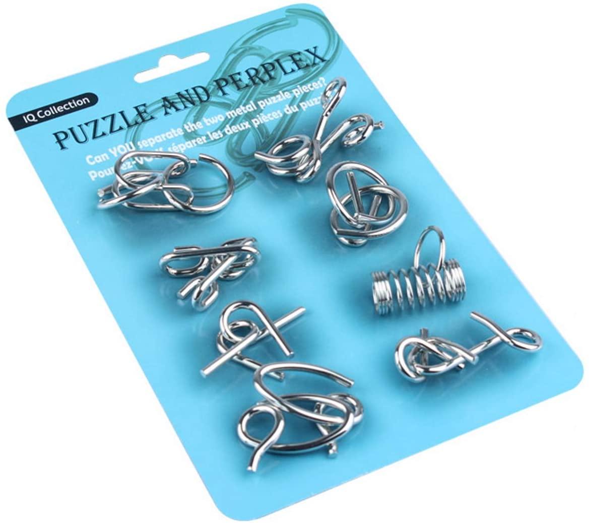 Metal Wire Puzzle Set of 8, 1 Blue PackBrain Teaser IQ Test Iron Link Unlock Interlock