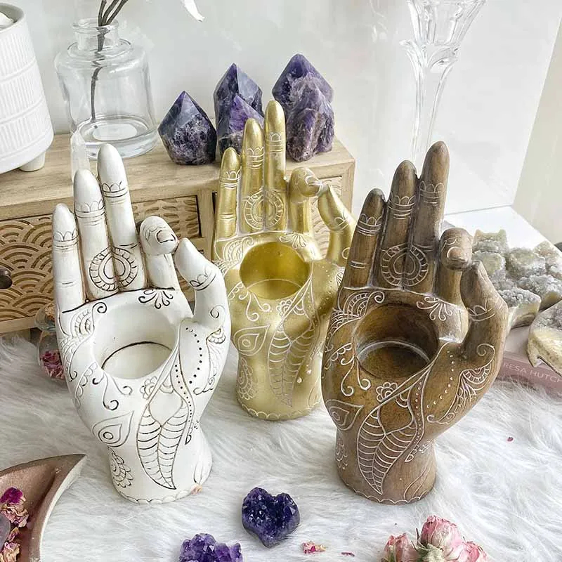 Mudra Hand Sculpture Candle Holder Tea Light Buddha Hand 10