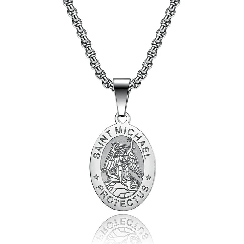 Saint Michael Pendant Protection with Chain Stainless Steel Archangel