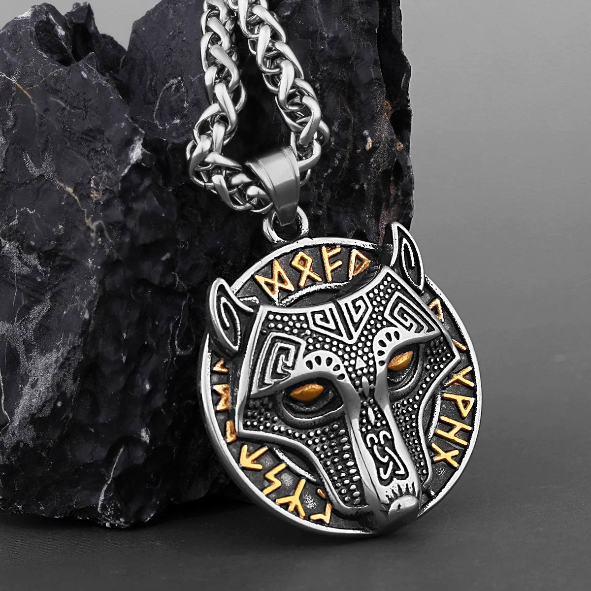 Viking Celtic Wolf Pendant Stainless Steel With Chain Nordic Necklace